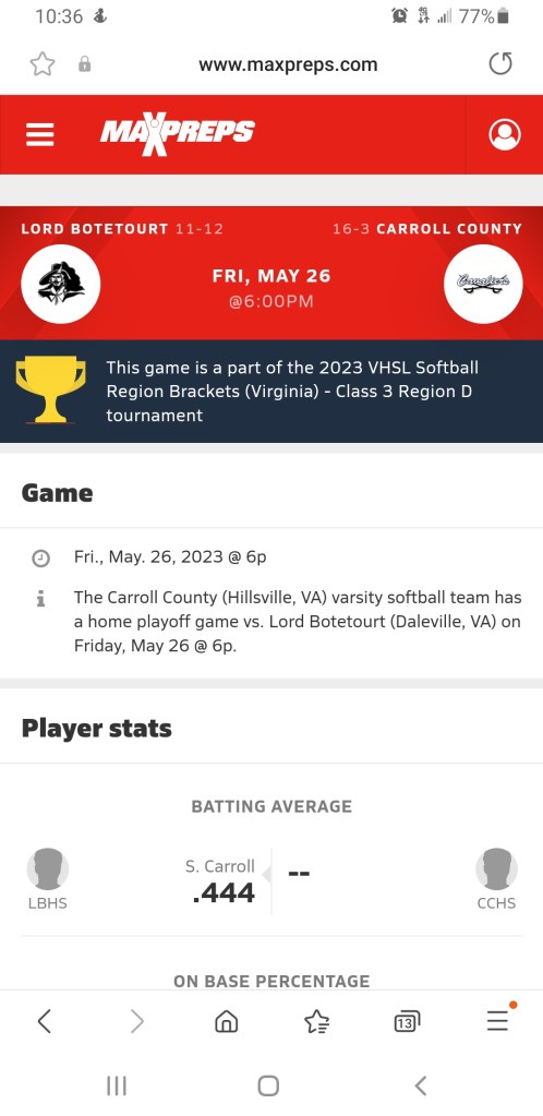 Carroll County and Lord Botetourt had one common opponent in Three Rivers District Champion James River. CCHS split with the Knights with the loss being 1-0 at home. LBHS traveled to James River back on April 5th and fell to the Knights by a final score of 3-2.