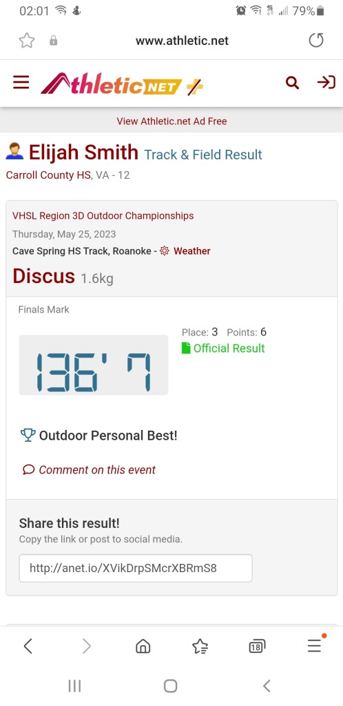 Elijah Smith will finish out his High School career on Saturday morning when the recently graduated Discus standout competes at Liberty University in Lynchburg.