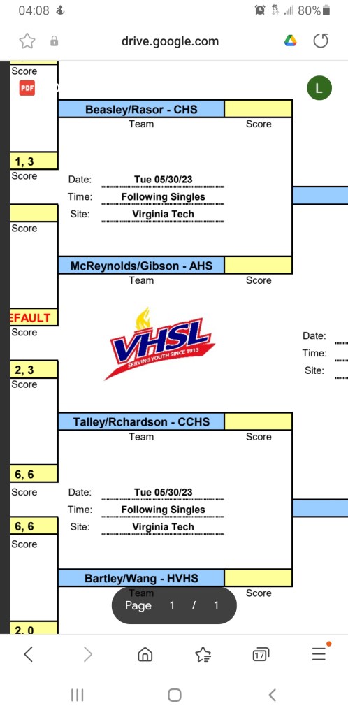 The Cavalier Duo is looking to make some CCHS Tennis πΎ history when they head back up to Blacksburg here in a few hours. If they win their Semi-final match they will more than likely run into the Top Seed from Christiansburg in the finals.
