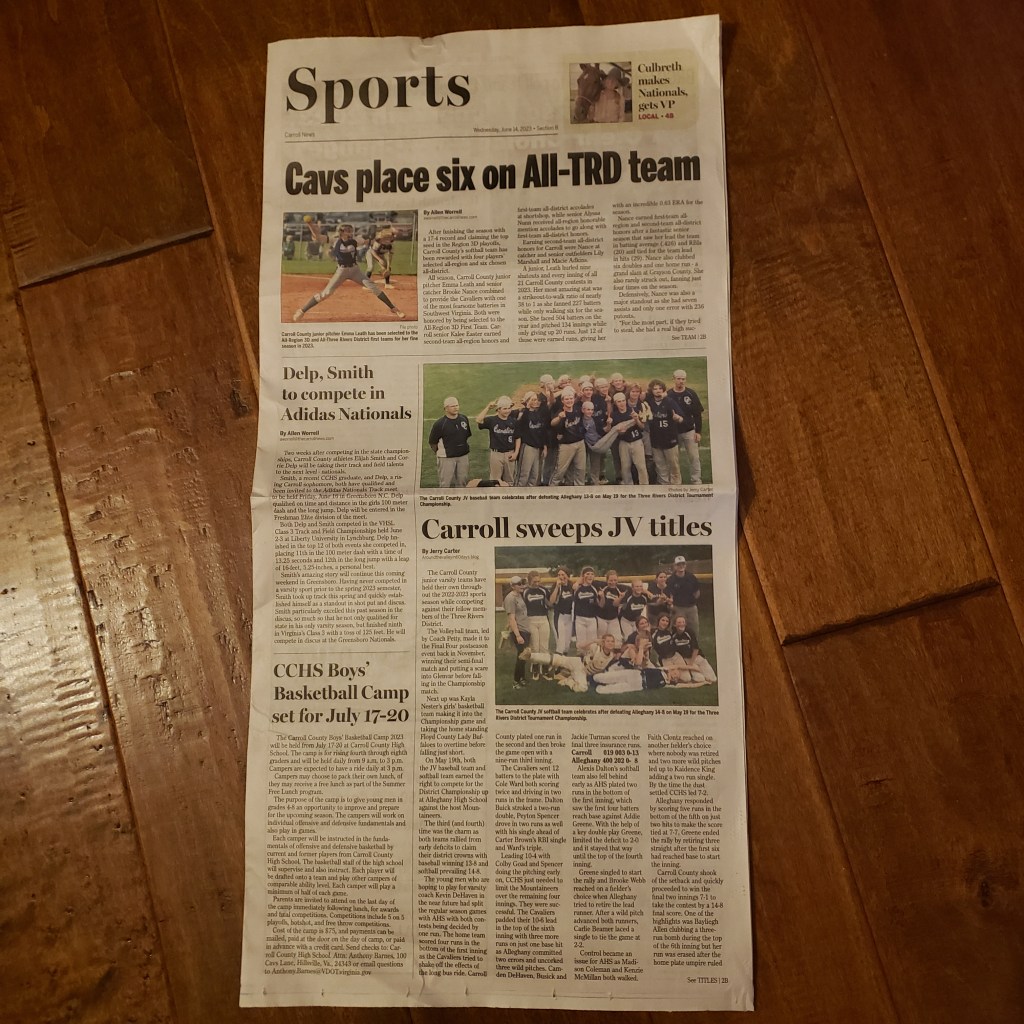 Our JV Sweep makes the Carroll News this week ! Around the Valley in 60 Days Carroll County High School June 14, 2023 1 Minute Share this: Share on Facebook (Opens in new window) Facebook Share on X (Opens in new window) X Like Loading... Related Published by Around the Valley in 60 Days Trying to find Positive in a World π that needs more of it! View all posts by Around the Valley in 60 Days Published June 14, 2023