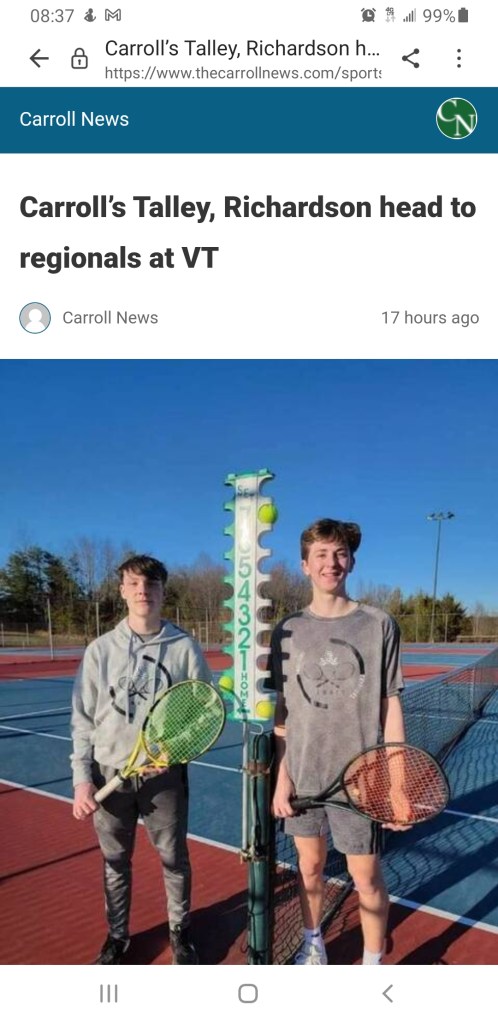 On the Tennis πΎ courts Ethan plays Robin to Jabin’s Batman. Playing as the Top Two seeds and Doubles partners the pair racked up wins as quickly as Emma Leath collects strike outs. The duo reached the Elite Eight of the State Finals and in most every other Sport that counts as qualifying for State but in Tennis πΎ they only acknowledge the Final Four. Greg Talley just finished up his first season of Coaching the Cavaliers program and does his job with a great deal of flair. Just another note on the adjustment that an Athlete faces when playing for 3 different Coaching staffs.