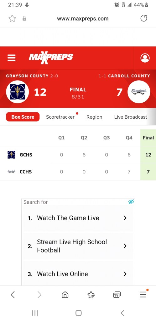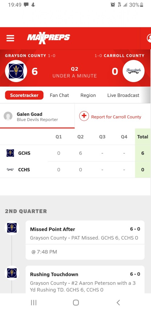 Football played at home in a rare Thursday night game and went toe 2 toe with Grayson County before falling just short 12-7. The Cavaliers (1-1) took the lead in the fourth quarter before the Blue Devils scored the game winning touchdown.