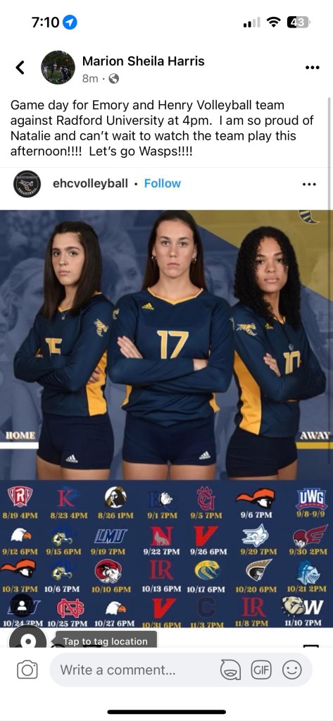 Next stop β was a return to Radford University and once again it was to check in on a Harris daughter wearing the colors of Emory & Henry.