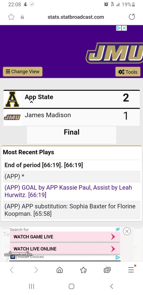 One final score to report – Our (Appy) Field Hockey ππ team scored a road victory, 2-1 @ James Madison University. Mountaineers now 4-1 on the season !!!