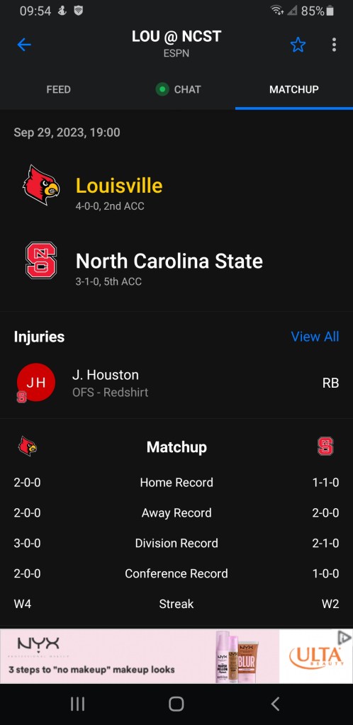 Meanwhile here at Carter-Finley Stadium π the Louisville Cardinals just scored their first points and now trail just 10-7, late in the 3rd.