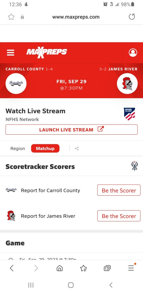 CCHS π just doubled up their lead over James River from 7-0 to 14-0 as our Mr. Smoot pushed it in from 2 yards out (5:00-3rd).