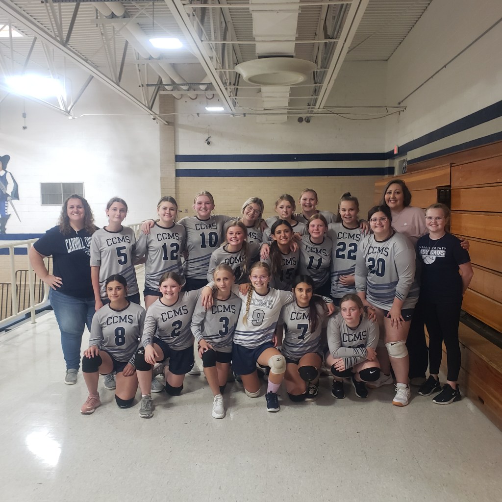Middle School 🏫 Volleyball 🏐 kicks off tonight’s Triple Header and our youngest group of Lady 👩 Cavaliers have the Gymnasium floor. Carroll County captured the opening set (25-21) and currently lead set #2, 14-11!