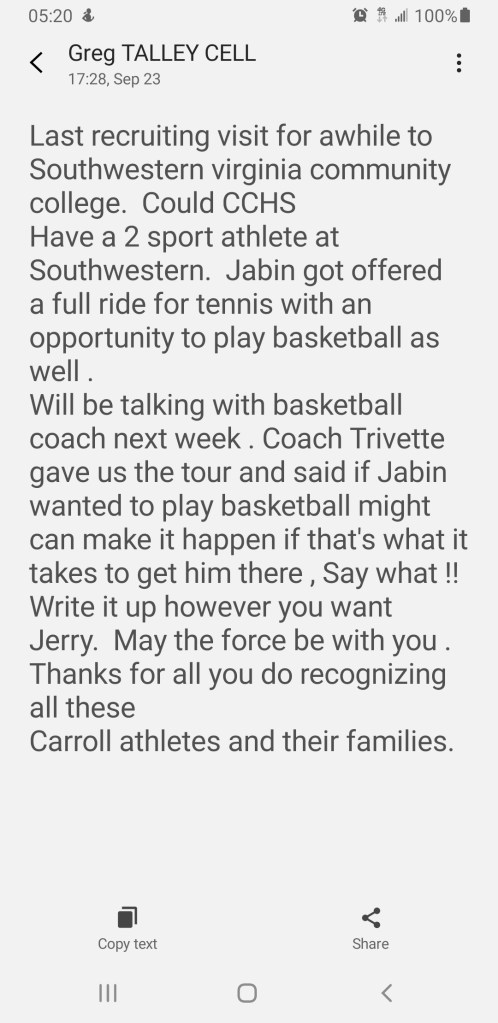 The above message was the latest from Coach, or Mr. T as I like to call him. Greg and I have a great deal in common so its easy enough for the two of us to communicate.