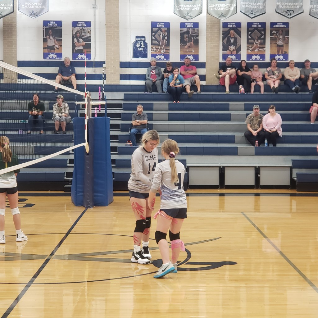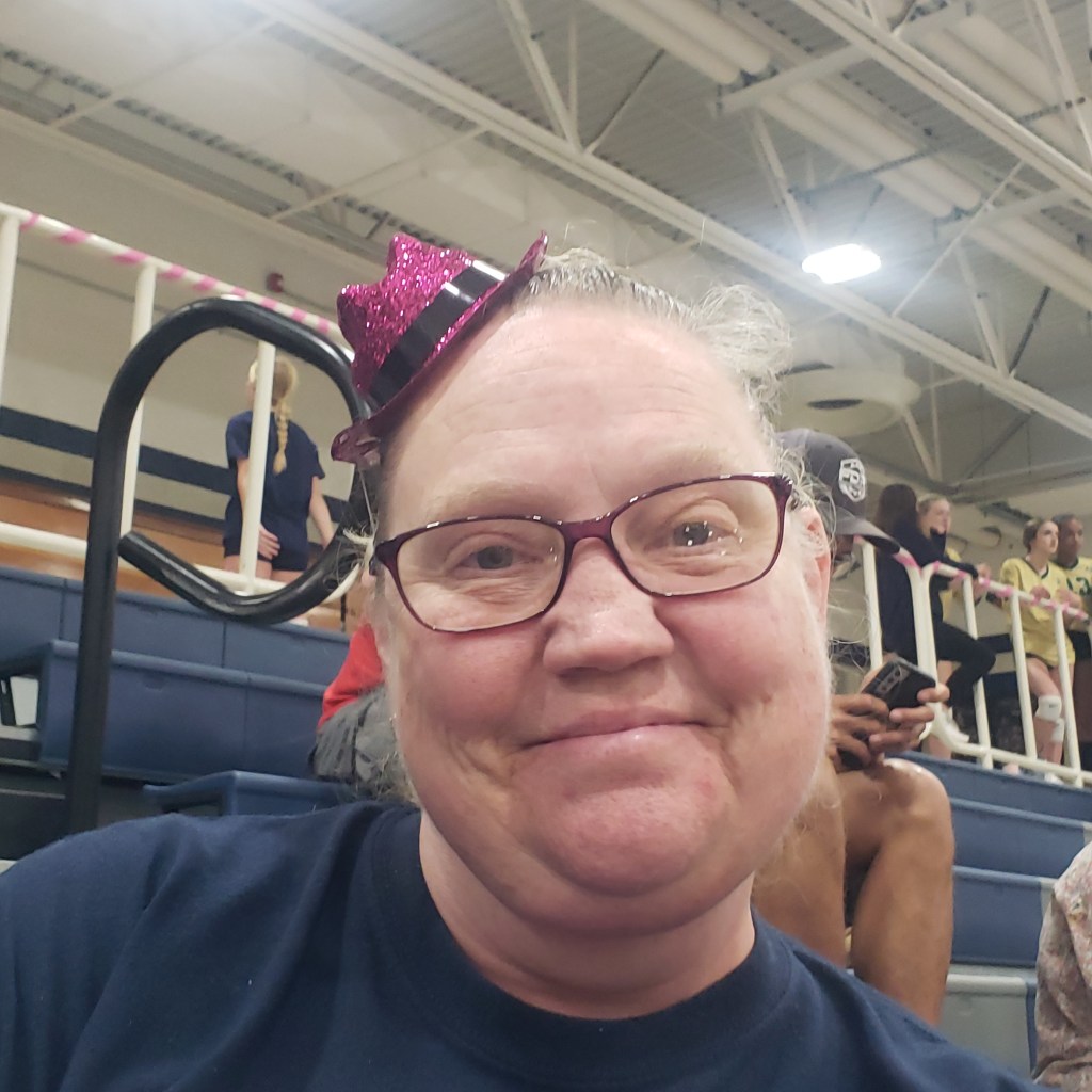 All three of our Volleyball ๐ teams are taking the court tonight as we Celebrate Breast Cancer โ Awareness. The Middle School ๐ซ team is finishing up their match and Mama Petty is making the rounds with her stash !