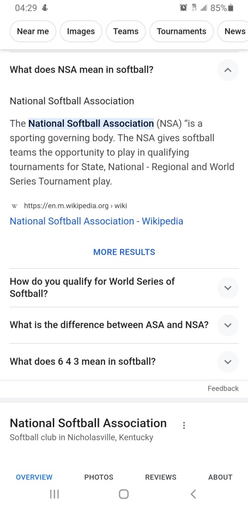 NSA stands for the National Softball Association which is one of two National groups that govern the ever growing World ๐ of Travel Softball.