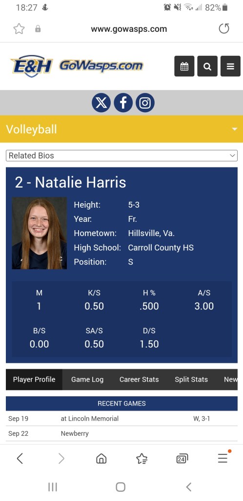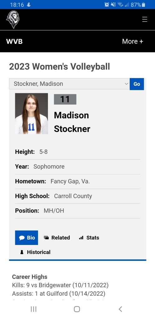 See, one of Cindy’s former players currently plays for EMU, Ms Madison Stockner. Coach made the drive π up I-81 to show support for one of her former players. Cavalier Alums play Volleyball π other places as well – Ferrum, Emory & Henry here in Virginia and as far off as the Greater Chicago area.