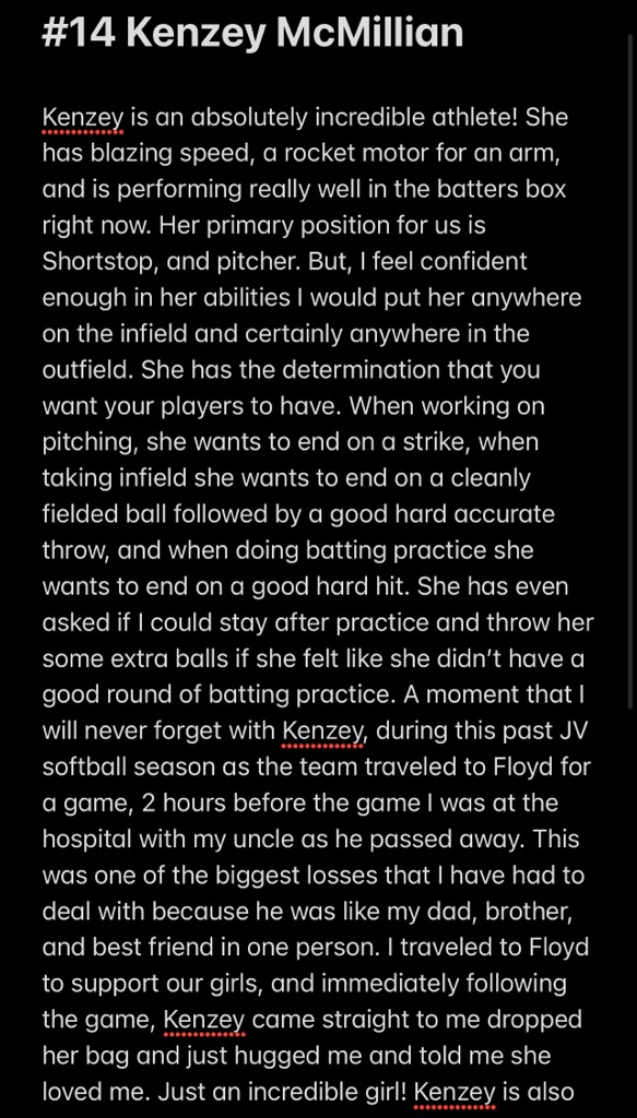 Tuesday’s Meet the Lady π© Swat Softball U-14 team takes us to #14 Kenzey McMillian Around the Valley in 60 Days Carroll County High School October 10, 2023October 10, 2023 1 Minute Ladies & Gentlemen, I present Ms . Kenzey McMillian ! Share this: Share on Facebook (Opens in new window) Facebook Share on X (Opens in new window) X Like Loading... Related Published by Around the Valley in 60 Days Trying to find Positive in a World π that needs more of it! View all posts by Around the Valley in 60 Days Published October 10, 2023October 10, 2023