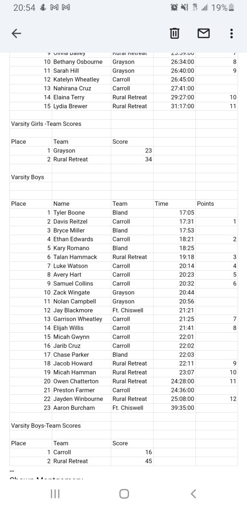 Today while I out at the Cross Country meet with Coach Shawn Montgomery and his Band of dedicated Runners πββοΈ I noticed two signs that I feel pretty sure belong to Vickey but there’s a catch. The event is Saturday morning, EARLY, Saturday morning π (7:30) but if that’s what it takes to meet my new HERO then so be it….