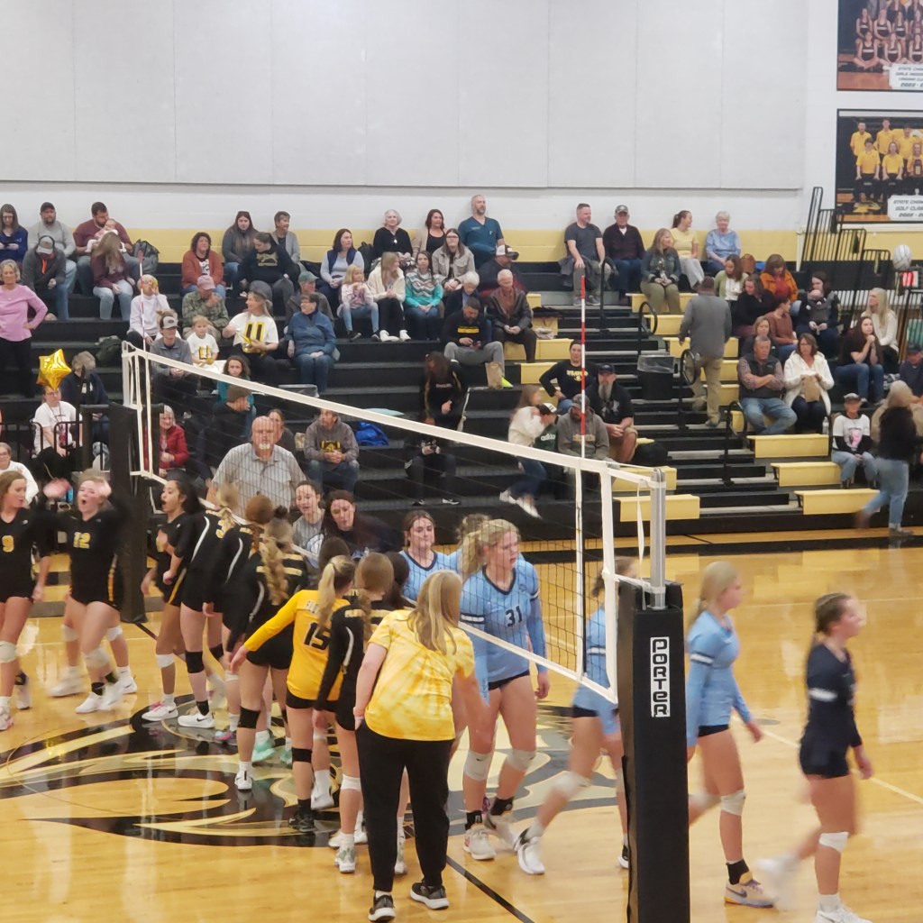 Five of the last 6 points came on either an Ace or Service error and Floyd County closes out the second set on the final Ace – 25 to 21….