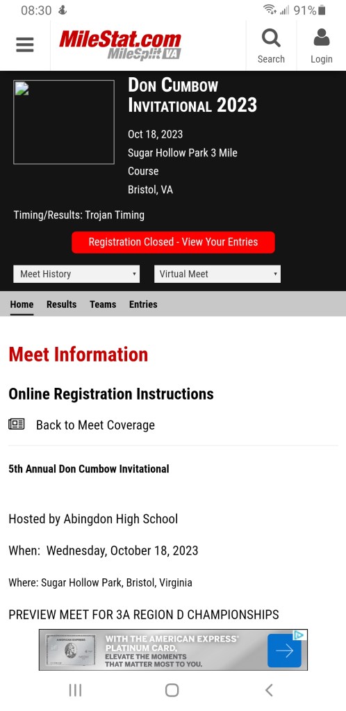 The 3 mile course is nestled inside Sugar Hollow Park and the event is hosted by Abingdon High School 🏫.