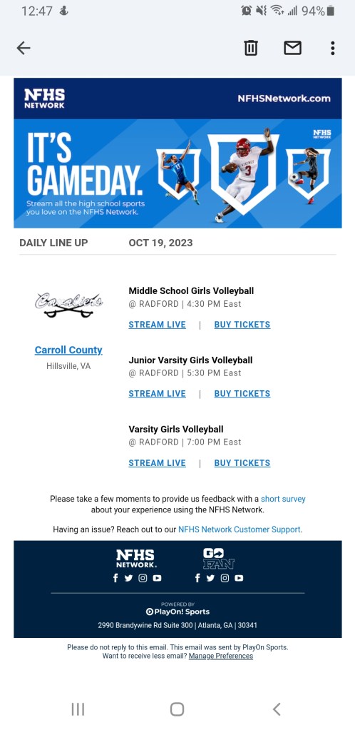 Officially, the Junior Varsity Volleyball π team will close out their season in Radford at 5:30 against the Bobcats. Head Coach Jason Petty and his Cavaliers did not make the Top Four in the District this season so tonight’s match is the final one on the season.