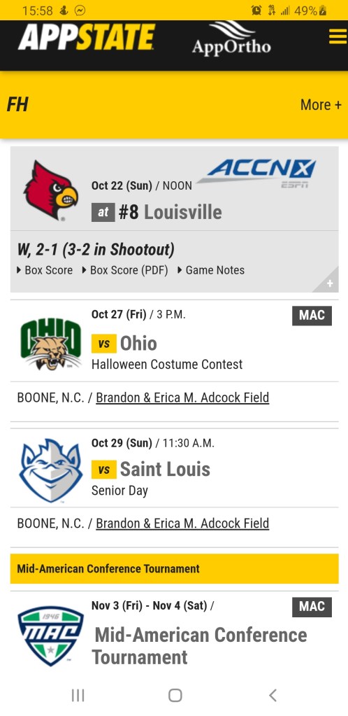 We close out the regular season with Matches this Friday and Sunday (Senior Day) so there’s two more treks to Boone this week.