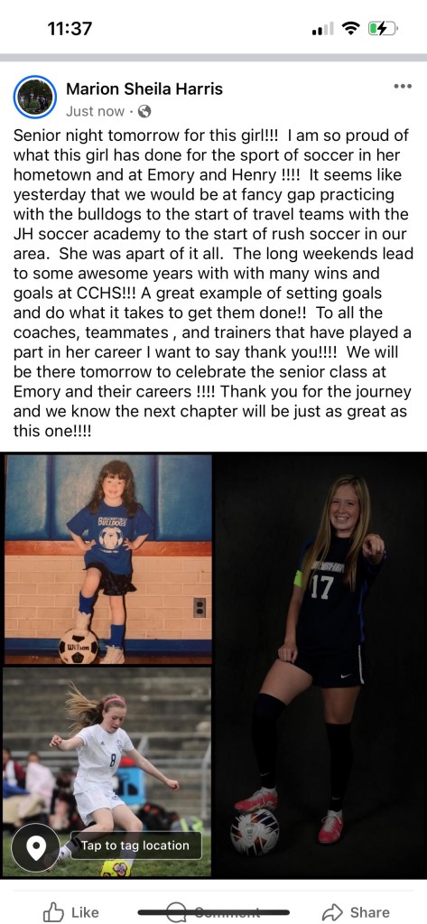 Emory and Henry’s Women’s Soccer β½οΈ program celebrated Senior Day for 2023 – 2034 and the Ceremony included Carroll County’s very own Adrienne Harris !