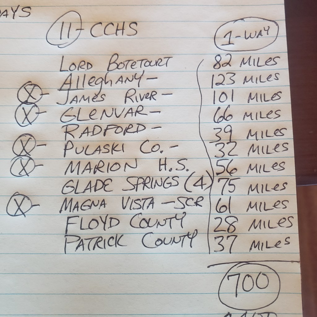 Miles π driven Round Trip to the 11 away matches – exactly 1,400 when you use CCHS for a starting point. Tougher to count the miles for the Home π‘ matches being everyone has a different starting point.
