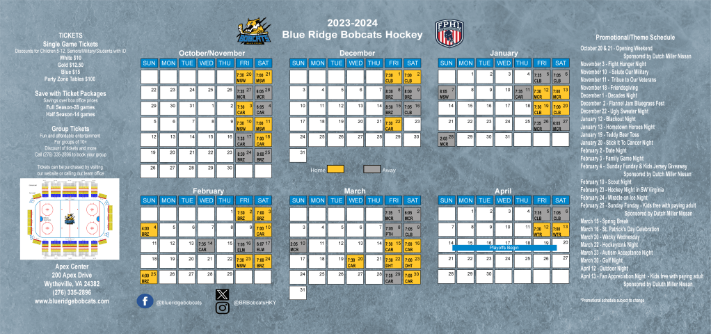 Use your two finger swipe to check out the Home games, which are played inside the Apex Center located just off I-81 & I-77 at exit 77.