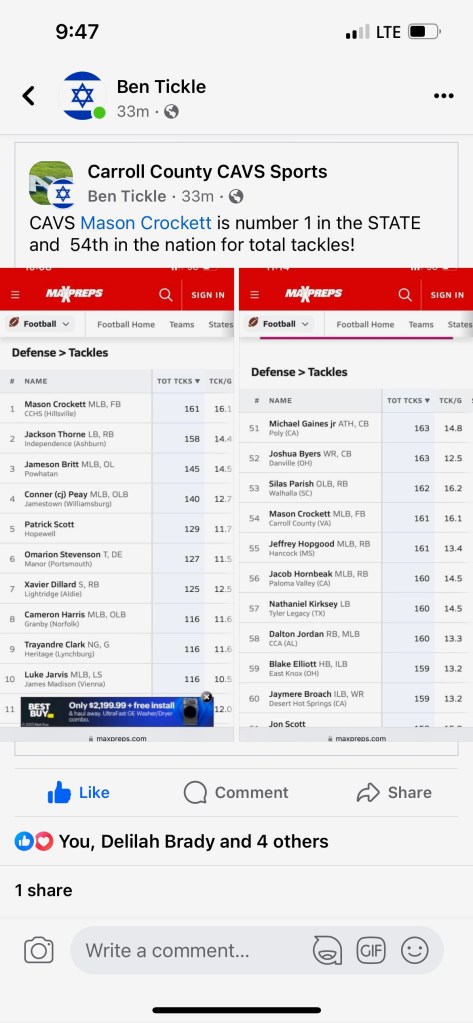 This week it will be #1- Magna Vista hosting #4 – Christiansburg & #2 – William Byrd hosting #3 – Lord Botetourt.