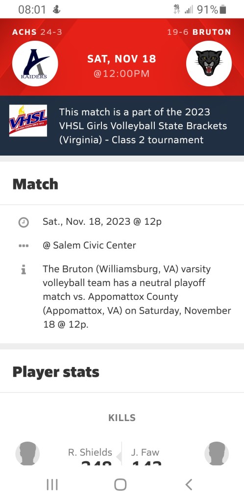 Class 2 will get the Day underway at Noon with Appomattox County (24-3) facing Bruton (19-6).