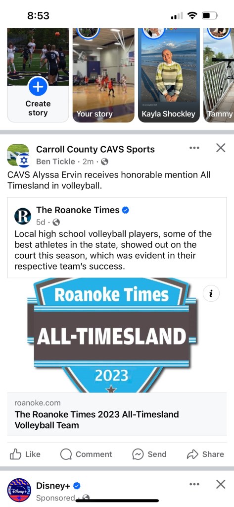 Marion finds some Volleyball ๐ news out of Roanoke – Congrats ๐ Miss Ervin