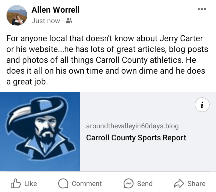 Allen Worrell of the Carroll News, Ron Cochran at Omega Church and Office Supply, Kris Richardson, Greg Talley, Kevin Burress, Rick & Donna Nester plus Marion & Shelia Harris to name a few.