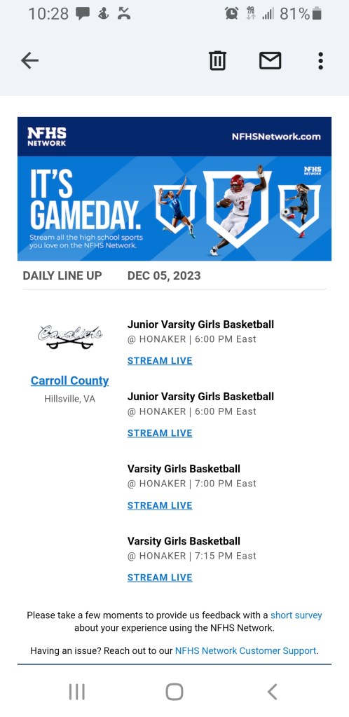 Carroll County High School π« is slated a pair of Basketball π games tonight up in the Hills of Honaker beginning at 6:00 pm. Both Varsity squads are undefeated on the young season with the Tigers π at 3-0 and the Cavaliers at 2-0