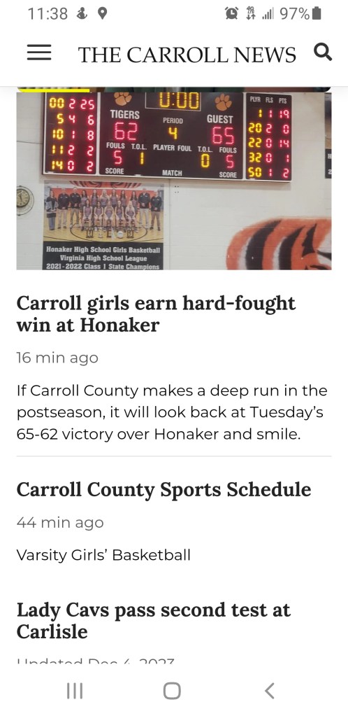The newly added Pay Wall for the web edition of the Carroll News has caused us to flip the script a bit. Now I post the story here and then Allen will take it and with my blessings change the verbiage to fit his needs.