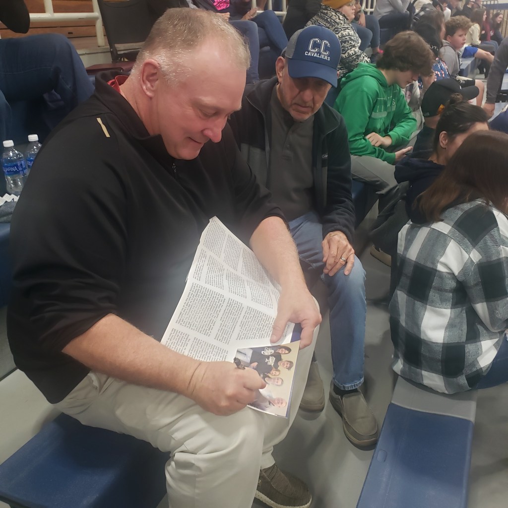 Bill Gallimore getting Kris Richardson to autograph his Basketball 🏀 Book 📖 in between quarters!