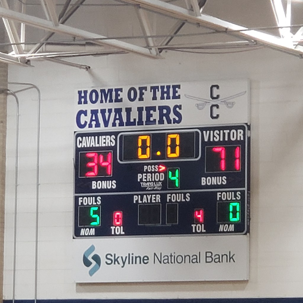 Dane and Colton both scored six points for the Cavaliers in the first half but the team is on the short end of a 34-12 score at the Half.
