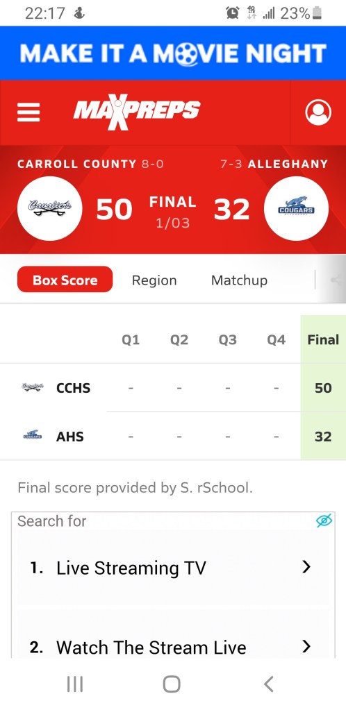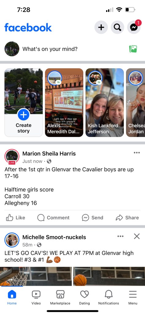After 1 Carroll County Lady Cavs JV leads Alleghany 25 to 4. Multiple players contributing offensively. The girls played a great 1st quarter – Kevin Burress with the Girls π§
