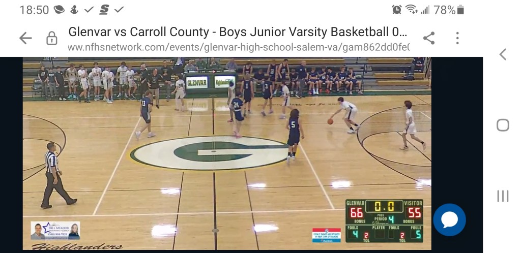Carroll County raced out to a comfortable lead in the Junior Varsity contest with the Highlanders before falling 66-55. Glenvar scored 27 points in the fourth quarter to complete the come from behind victory.