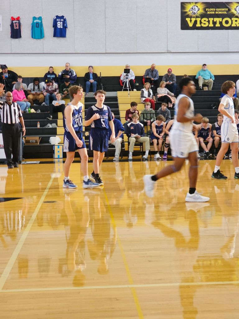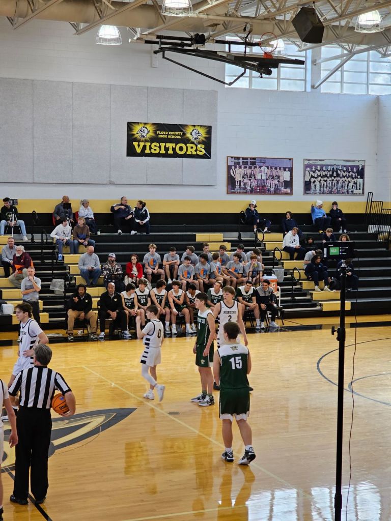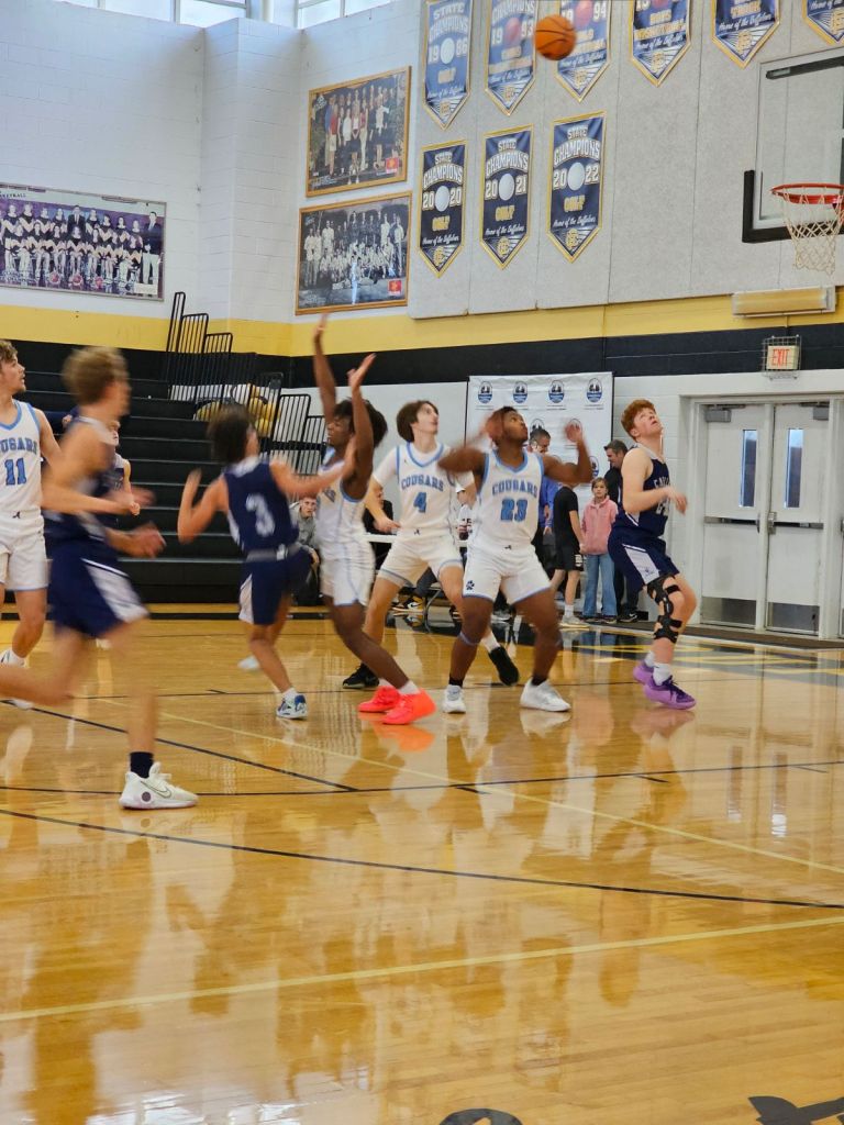 βThe Cougars were leading 24-5 at the end of the opening 7:00 minutes but the thing about our team that stuck with me the most was how hard the five we had out on the floor continued to battle hard despite the large deficit. The game was played in the old Gymnasium at Floyd County so the teams weren’t driven by the sound of a large crowd but our guys kept at it right until the end of the 56-25 decision.