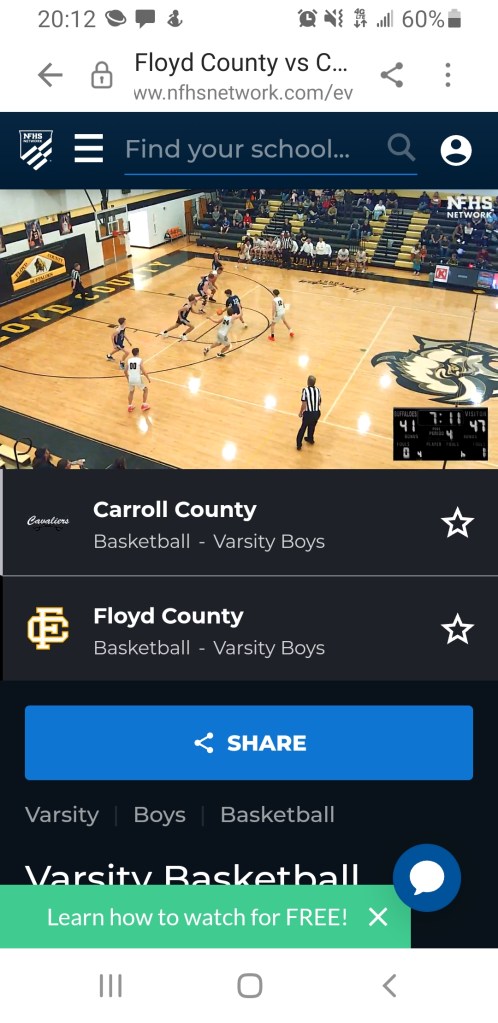 Greg Talley is set up over in Floyd, JV tips at 5:30pm…