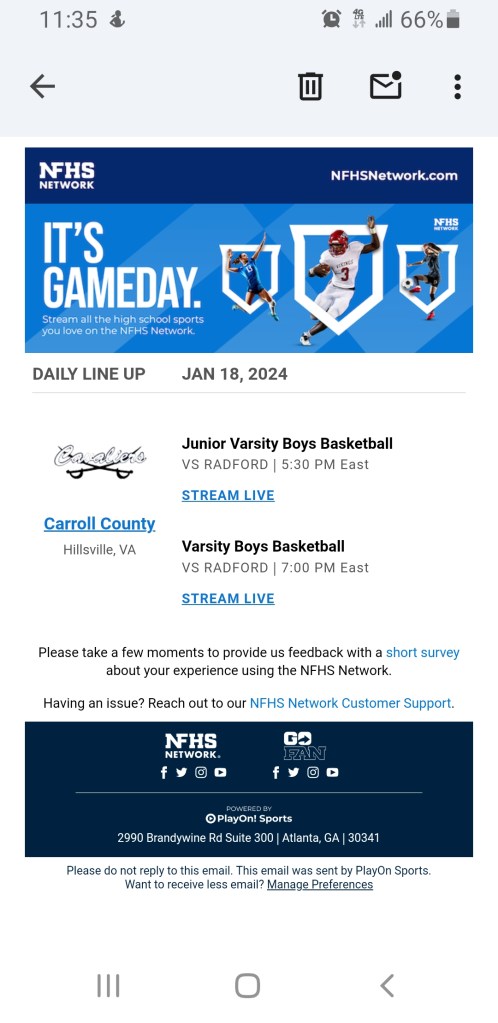 βThe focus now has to be getting the District games played as we are facing the possibility of even more weather coming our way. Tip for the Junior Varsity game is set for 5:30pm with the Varsity following soon after.