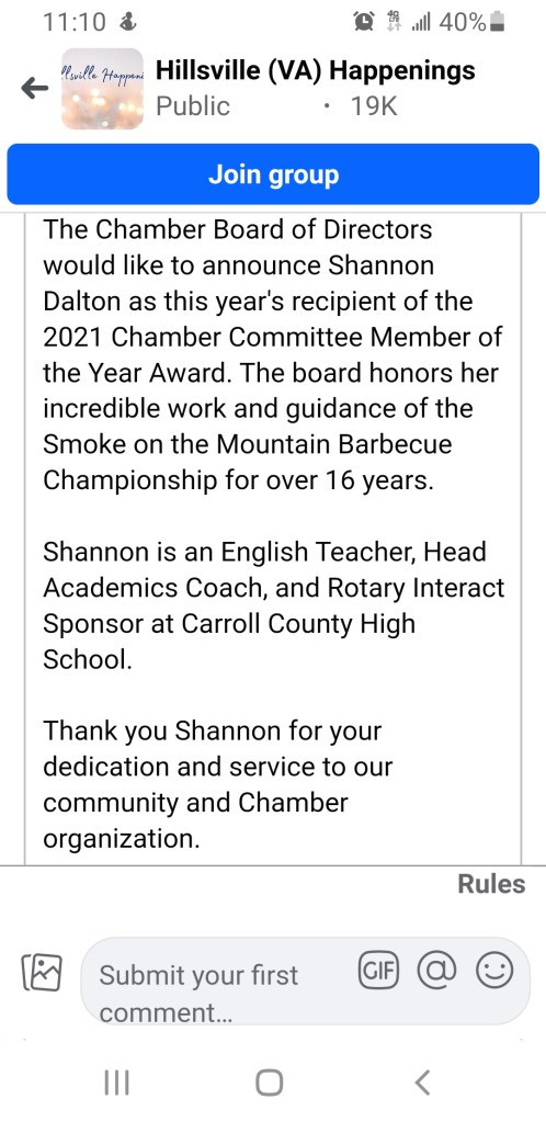 βI’m not sure that I can possibly explain the value of Mrs. Dalton to our efforts as she has taken on the coverage of our Swimming πββοΈ teams.