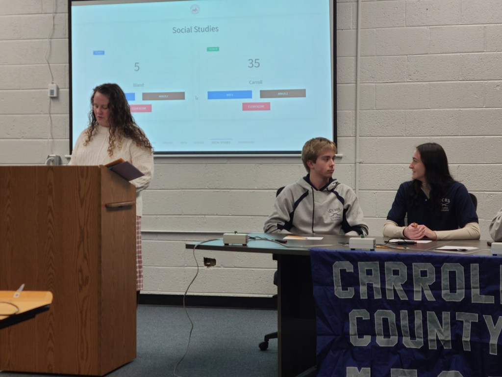 Science had a dominating 95-0 win, with junior Connor Beasley having an outstanding night in the toss-up round. Beasley carried almost all of the ten of the toss-ups, shutting out a young Bland team. The Bland coach said she’s really excited about the future of her team because they are mostly eighth graders who will have many years to play together.