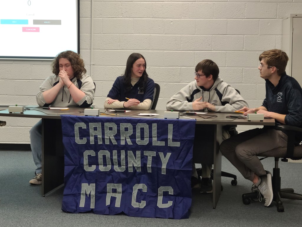 The English teams prepared for the season by reading eight novels, eight plays, eight works of non-fiction, 16 short stories, and 16 poems… so they’ve got a lot of information in their heads to try to come up with in five seconds. Carroll had three returning players and three new players tonight who worked together for a 38-25 win.