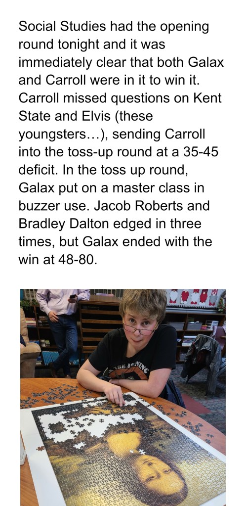 Here are some notes – I would normally add a paragraph about the JV game in this spot but tonight I gave them their own gamer.