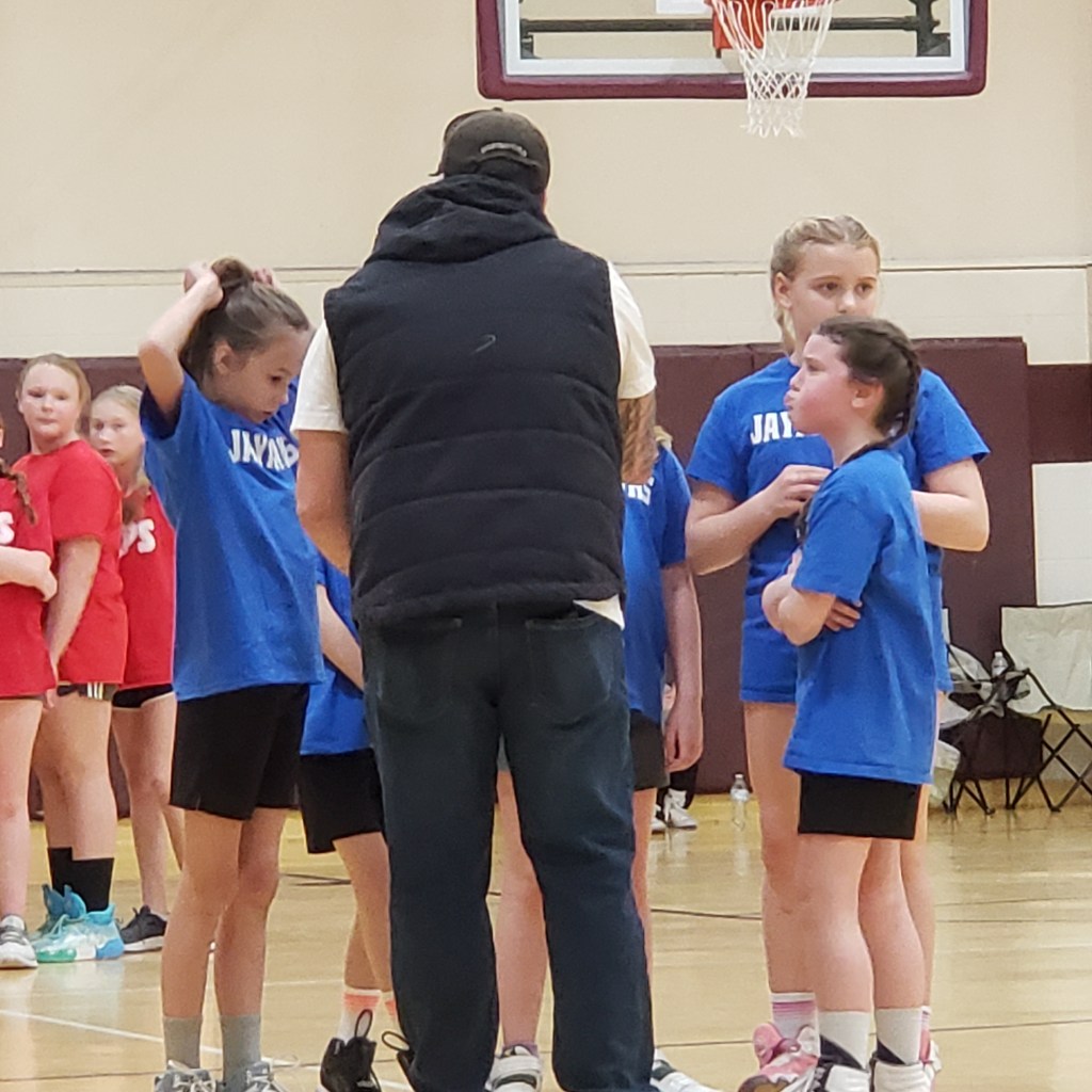 Coaches and Team meeting ahead of Tip. Our Son Coaches the Jayhawks!
