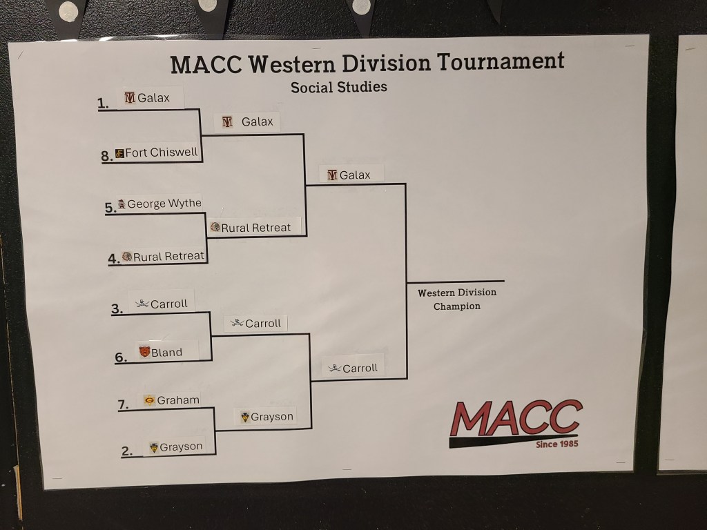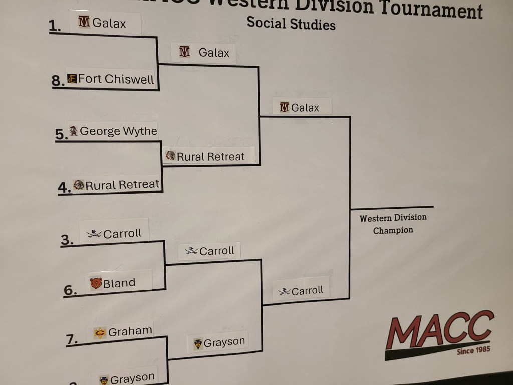 Social Studies lost their round to Galax, but punched their card to SuperMACC at Blacksburg next week by being the tournament runner ups.
