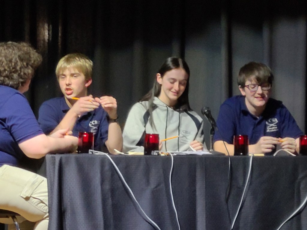 Carroll English, seeded 3rd, also came down to the last question and despite a solid run by Trenton Newman, Julia Largen, and Jack Wright, the last question still has us all scratching our head and left Carroll with a loss to Bland.