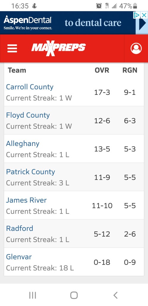 With all results in, the men were 3rd in the Region. Hidden Valley was first and William Byrd second.