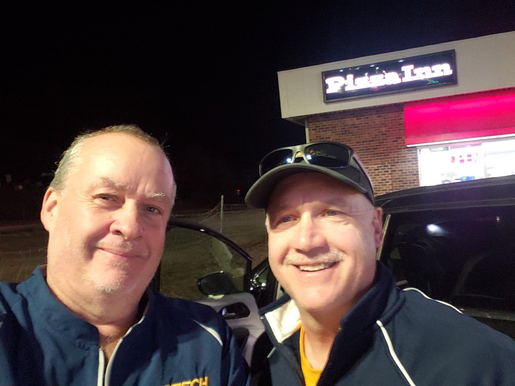 The next best thing would be to meet up with the team and treat them to dinner being their vans would be driving π right through Carroll County. Once I finished up with the Podcast I had been invited to record (story coming) I headed over to the parking lot of the Pizza π Inn to catch up with the team.