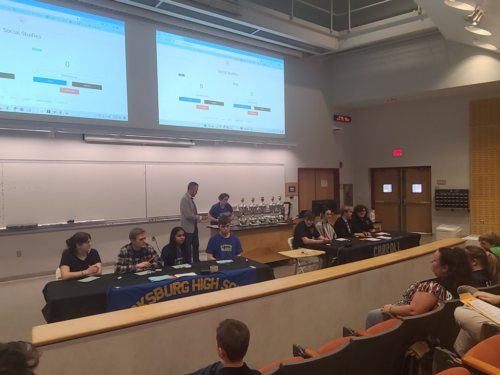 Blacksburg is taking an early lead, but Connor Beasley is back in on question three and four.