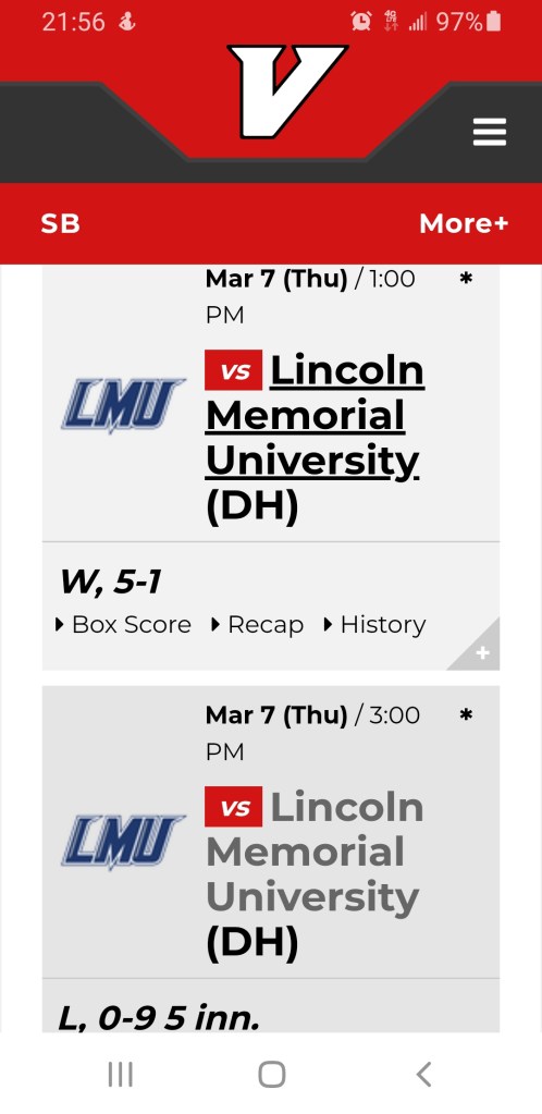 Lauren Alley and UVA-WISE split their double header today, winning the opener before dropping the night cap versus Lincoln Memorial University