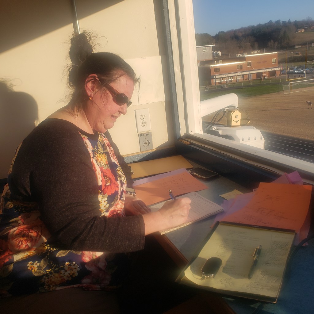 Number Two thing – just how Impressive Stacy Whitaker is. Before today the two of us had never had an actual conversation and it was a absolute joy to share a wooden box with her for a few hours. The number of times that our paths cross – Girls Basketball 🏀, Girls Volleyball 🏐, Our Softball Concession Stand and now the Track 👣 and Field Press Box.