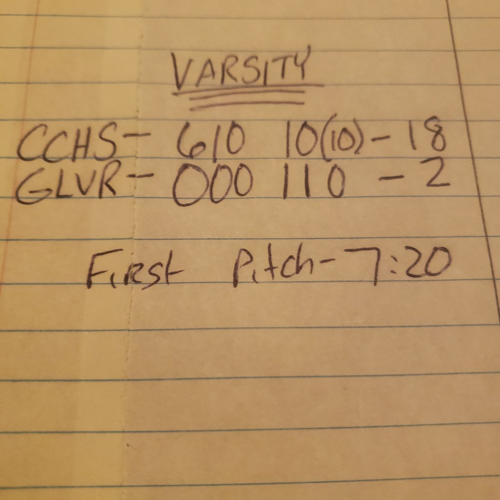 Glenvar plates 1 in the bottom of the 5th. We are up 8 to 2 going in the top of the 6th
